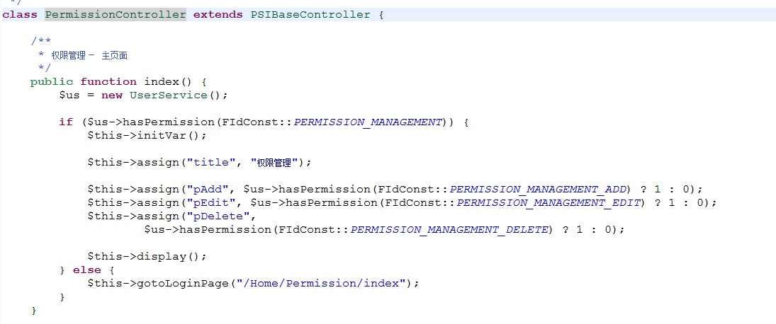 如果没有权限用$this->gotoLoginPage来跳转页面